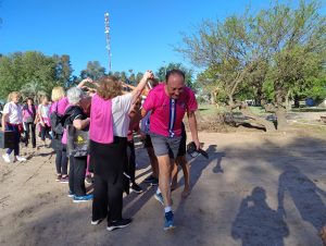 La caminata rosa partió desde la sede de la entidad en la calle Arenales, entre Rivadavia y Moreno hasta el club de remo La Botera.