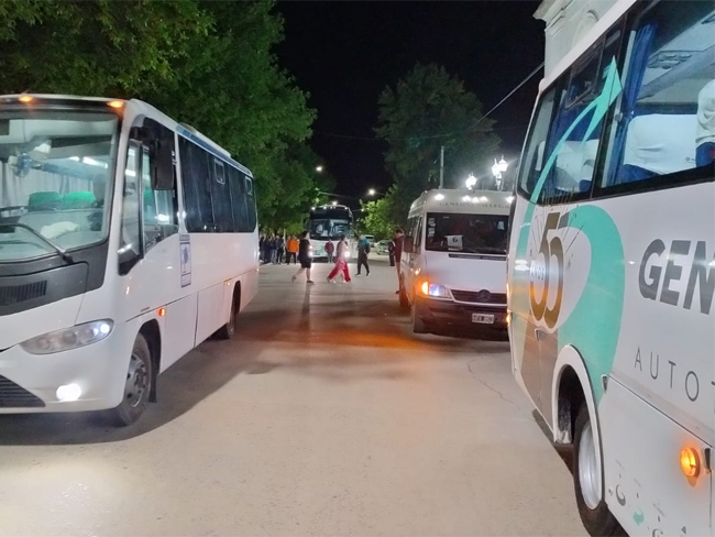 A la medianoche 12 unidades entre colectivos y combis partieron desde el Palacio Municipal hacia «la felíz» para participar tanto en Deportes como en Cultura durante una semana, que es el tiempo que esta instancia del programa provincial durará.