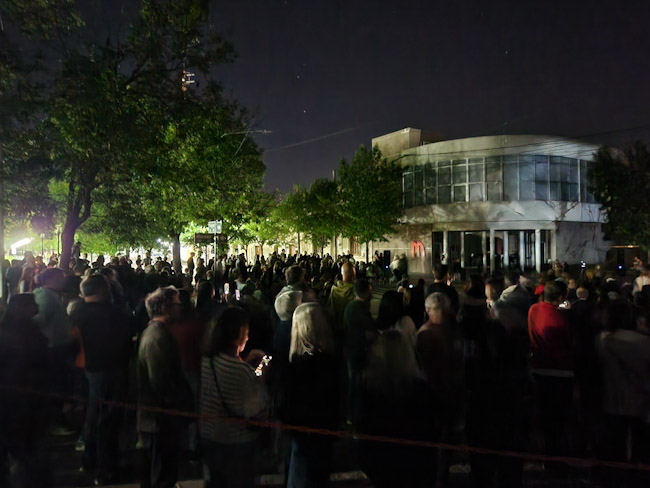 La novedad que representa esta propuesta cultural está teniendo un importante número de público que ocupa la totalidad de la intersección de las calles Pringles y Moreno.