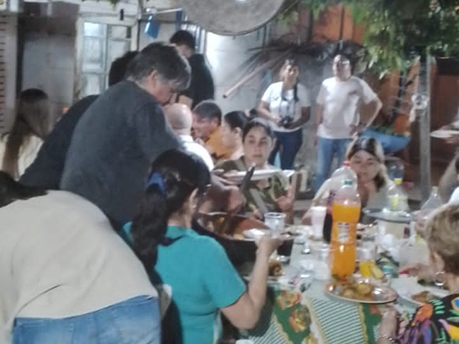 Se reunieron como estaba previsto en el patio de la peña La Guardería del Cuita, la parte posterior de la vivienda de Nelson Surbano (Cuita) acondicionado para este tipo de eventos; en este caso la particularidad es que él es uno de los ex residentes del barrio y uno de los impulsores de la idea.