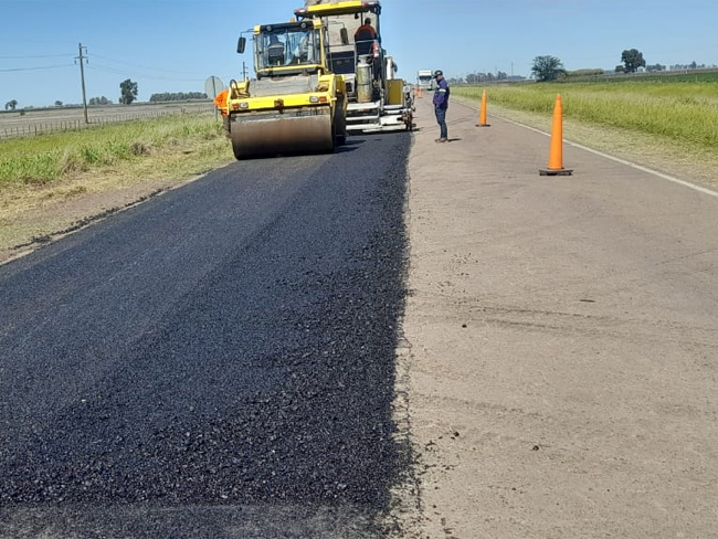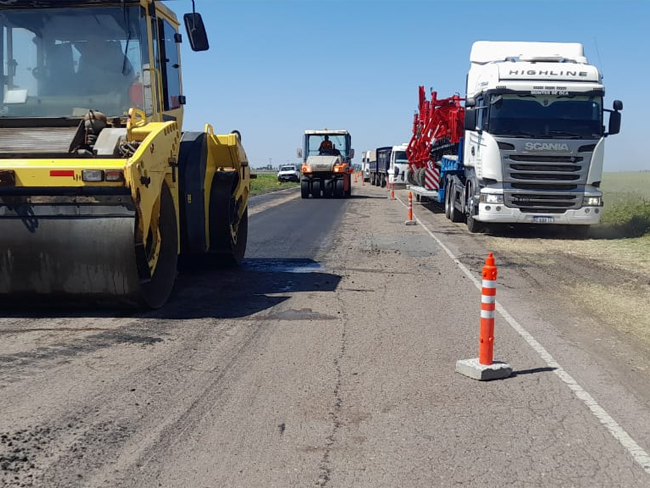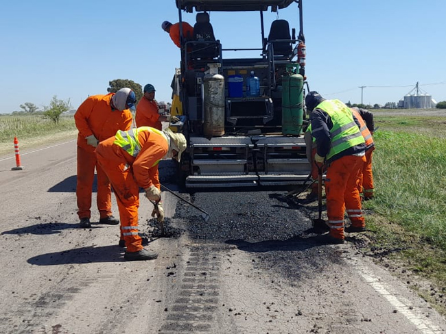 Personal de la empresa Rovella Carranza, concesionaria de la obra de repavimentación, se encentra realizando un bacheo profundo entre los kilómetros 510 al 508, tramo Rufino – Cañada Seca. En este momento trabajan frente al Destacamento de la Policía de Seguridad Vial.