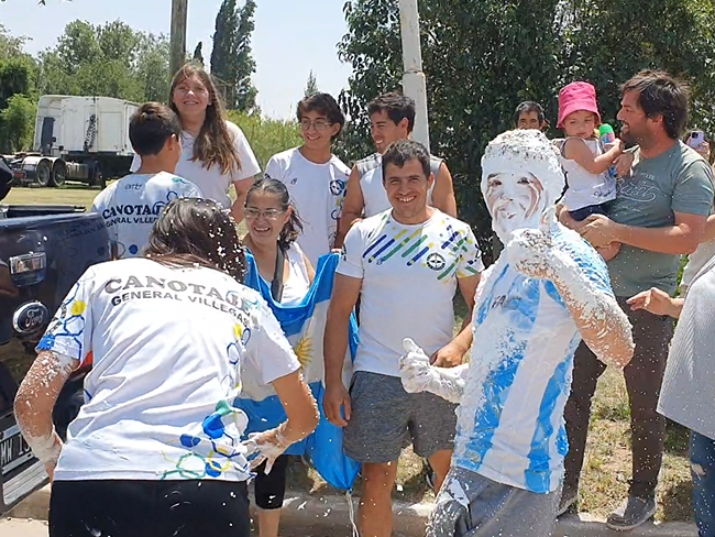 Este mediodía el palista fue recibido por el ambiente del remo que lo aguardaba en el ingreso principal a la ciudad con una verdadera fiesta que concluyó con una caravana por la ciudad que recorrió las calles céntricas hasta la sede de La Botera.