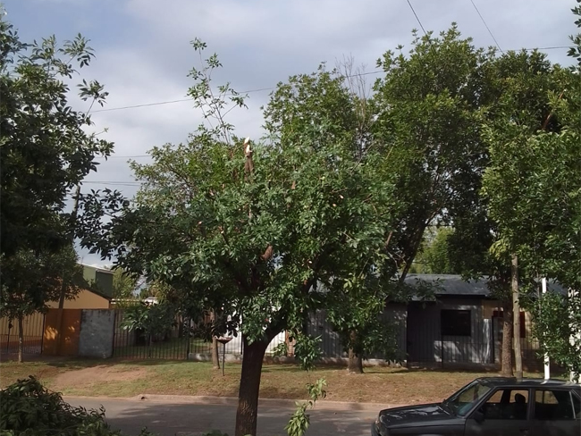 La expresión es la de un vecino cercano al hospital de General Villegas donde se está llevando a cabo la poda de árboles que alcanzan los cables de las líneas de media tensión.