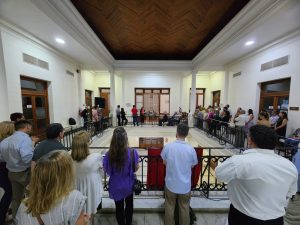 Fue con un sencillo pero sentido acto que anoche, 10 de Diciembre, al cumplirse un nuevo aniversario de la instauración de la Democracia, el Salón Dorado de la Municipalidad pasó a llamarse «Presidente Raúl Ricardo Alfonsín».