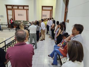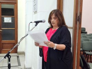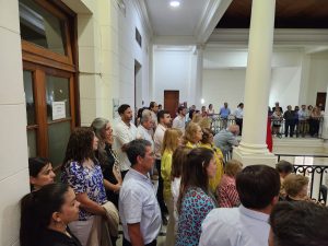 Con predominancia de autoridades, ex funcionarios, legisladores y militantes radicales, el acto tuvo lugar en el ingreso al salón. Los oradores fueron la presidente del HCD, la concejal, y única concejal radical, Claudia Esain y el intendente Gilberto Alegre.