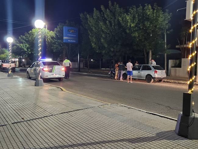 El incidente vehicular involucró a tres vehículos y dos personas, las ocupantes de una moto 110 cc, que circulaban por la calle Moreno, frente al hotel Alvear.
