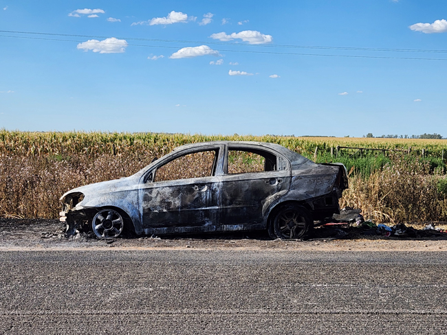 Se incendió un automóvil en la Ruta 188 entre General Pinto y Coronel Granada