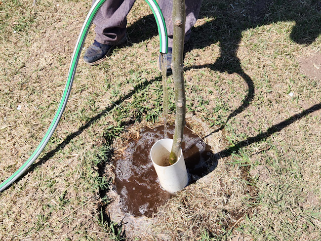 De este modo, en tiempos de escasez de lluvias, el arbolado público, ya que este no es el único lugar en el que hoy trabajaron, se asegura lo vital.