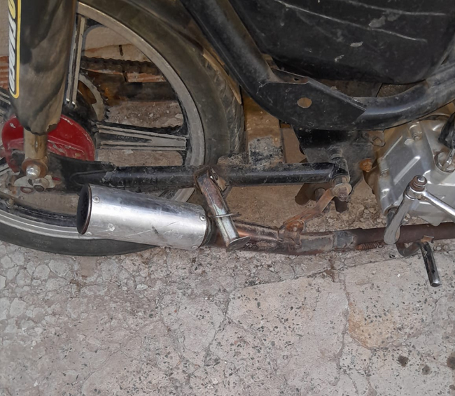 En esta oportunidad se trata de una 110 cc. que carece de lo mínimo e indispensable para circular, incluso cuenta con caño de escape adulterado y número de motor limado.