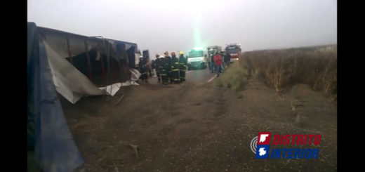 Un camión Ford Cargo que tiraba un acoplado, cargado, que circulaba con destino Rosario, se fue abajo de la banquina sin posibilidades de salir por sus propios medios, razón por la que intervino bomberos voluntarios y personal policial de la localidad.