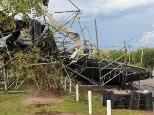 La cola de un tornado se llevó el escenario de la Fiesta Nacional de la Sal en San Martín (*), titularon los medios de aquella zona.