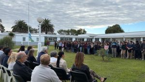 Con la presencia de alumnos y comunidad educativa, se izó en primer lugar el pabellón nacional, acto que estuvo a cargo del intendente municipal, la directora del establecimiento, Daniela Aguirre; el inspector Jefe Regional, Gerardo Chichiri; la inspectora Jefe Distrital, Susana Garat y la inspectora de Educación Agraria, Sandra Alessio.
