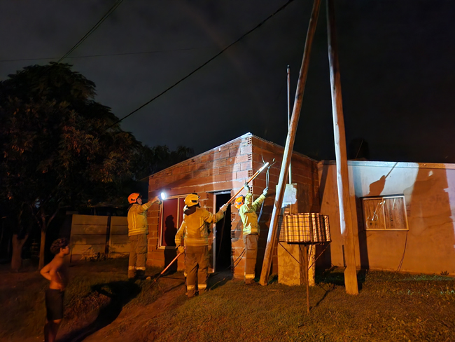 Personal de Eden llegó con una cuadrilla, desenergizó y se retiró. Los bomberos voluntarios, fueron quienes estuvieron por una hora y media en el lugar, extinguiendo las llamas de los cables, los que luego cortaron todos aquellos que se encontraban en la calle caídos, o cerca del suelo, retirándolos, para evitar cualquier inconveniente que pudiera afectar a una o más personas.