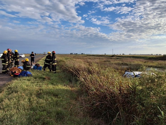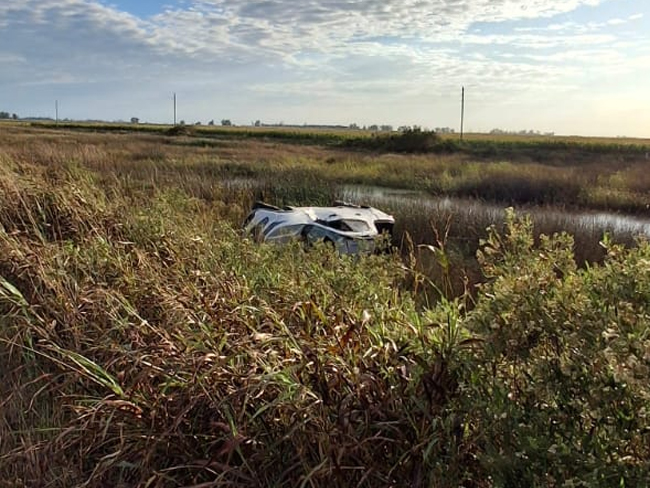 Por causas que se tratan de establecer el rodado se salió de la traza volcando en el préstamo, donde quedó sobre uno de sus laterales, cerca del agua producto de las últimas lluvias.