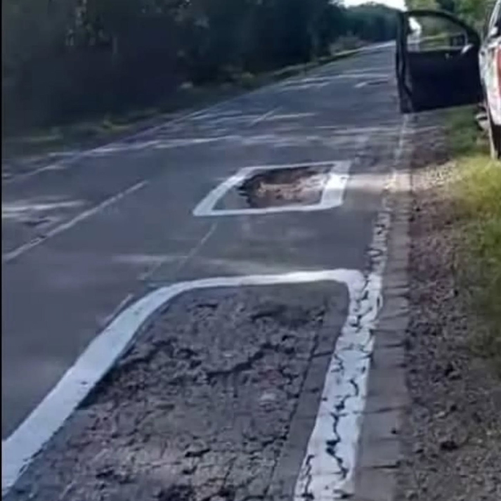 Ayer viernes por la tarde, Costa, acompañado por uno de sus empleados, que le indicaba si algún vehículo se acercaba peligrosamente por la ruta, se dispuso a señalizar los pozos pintándoloes de blanco en su circunferencia, haciendo cruces unos metros antes y hasta escribiendo sobre el asfalto la palabra «pozo», pensando en aquellos conductores que no conocen el estado en que se encuentra el asfalto.
