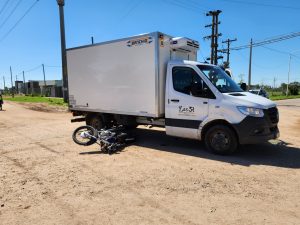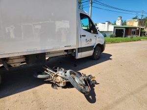 El motociclista que circulaba por Saavedra, no pudo evitar la colisión al dar contra la cabina del rodado que lo hacía por Panacea. El hecho ocurrió minutos antes de las 13:00 hs.