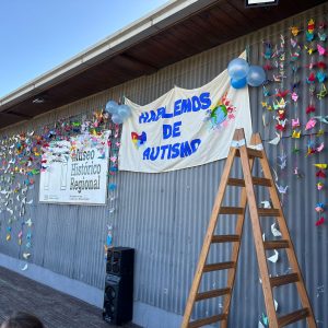 Entre las actividades, se colgaron grullas, globos azules, color que identifica al Autismo, un cartel alusivo, el que quedará colgado para que sea visible el mensaje.