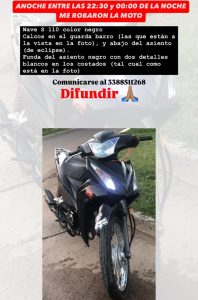 Luego de la denuncia, el propietario con la ayuda de un familiar recorrieron diferentes lugares en los que podría hallarse la moto; dicho de otro modo, aquellos puntos de la ciudad en los que se suelen encontrar vehículos de este tipo que han corrido la misma suerte.
