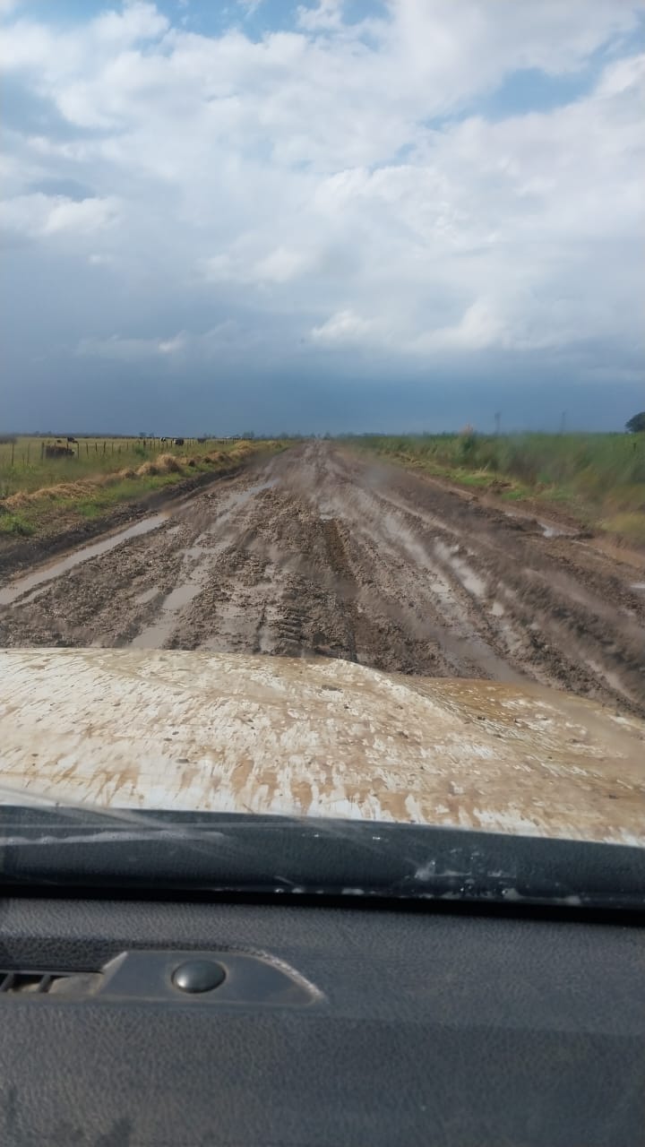 Aquí se observa maquinaria agrícola, que sin duda se encuentra trabajando, circulando por caminos vecinales un día de lluvia generando serias roturas en la traza, que cuando seque representará una incomodidad para quienes transiten, independientemente del tipo de rodado que lo haga.