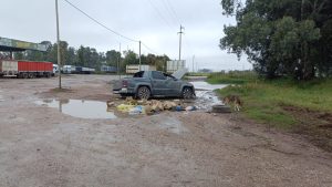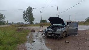 Esta tarde, en las primeras horas, una camioneta Volkswagen Amarok, volcó en la Ruta 188, entre el acceso principal y el que conduce al cementerio.