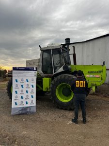Continuadas las averiguaciones, teniendo como sustento los elementos confiscados previamente, con el propósito de secuestrar la maquinaria agrícola, se logró establecer que uno de los tractores marca Zanello, se encontraba en un campo de la localidad de San Antonio de Litin, utilizado en tareas agrícolas propias de la zona. Es así que el miércoles próximo pasado, autorización judicial mediante, los detectives se trasladaron hacia la localidad de mención donde llevaron a cabo nuevo allanamiento, logrando satisfactoriamente el secuestro y traslado a la pcia de Buenos Aires, de la unidad citada y notificación de los recaudos legales para con los imputados de marras.