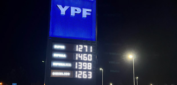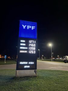 En el cartel electrónico que se encuentra en el ingreso a la estación de servicio YPF DE General Villegas, ubicada sobre la Ruta 188 se pueden ver los nuevos valores en dos de los combustibles.