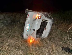 Al arribar, los efectivos se encontraron con una escena elocuente: sobre la banquina norte yacía un ejemplar de chancho jabalí sin vida, mientras que restos plásticos de la carrocería del automóvil se encontraban esparcidos sobre la cinta asfáltica. A pocos metros, entre el alambrado perimetral de un campo y la banquina, se encontraba el Volkswagen Gol volcado sobre su lateral derecho.
