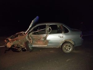 El día lunes a las 19:30 horas aproximadamente, en la Ruta Provincial 50, a unos mil metros del acceso a la localidad de El Dorado, distrito de Leandro N. Alem, un automóvil Chevrolet Corsa y un camión Mercedes Benz 1628 colisionaron sobre la traza.