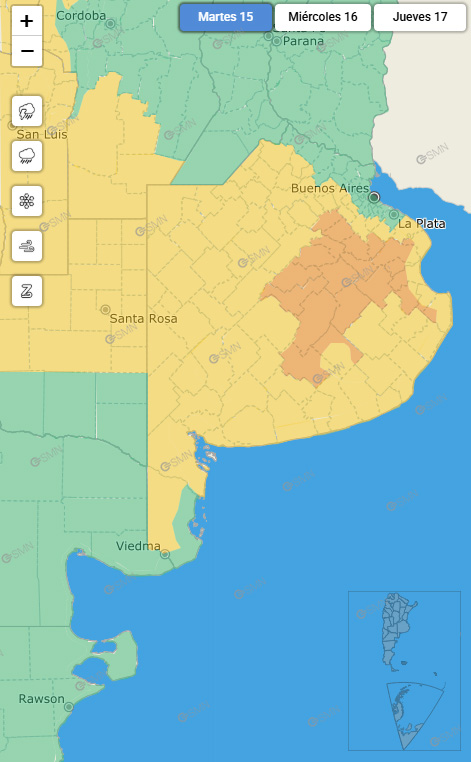 El Servicio Meteorológico Nacional emitió un Alerta que va desde la tarde de este martes 15 de julio hasta miércoles 16 por la mañana por tormentas con actividad eléctrica, lluvias y vientos fuertes. El Alerta es Amarillo por lo tanto el rango sugiere prevención y estar atentos a los eventos climáticos.