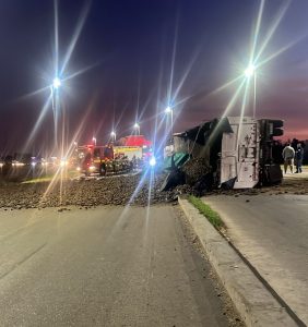 Esta mañana un camión de la ciudad de Saladillo, cargado con papas que circulaba por la Ruta nacional 226 en sentido Tres Algarrobos – General Villegas volcó al girar a su izquierda cuando se disponía a tomar la Ruta 33.