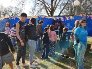 La propuesta incluyó chocolate, masitas, tortas, juegos, peloteros, un payaso en zancos que animó la tarde, carreras y hasta partidos de fútbol; todo haciendo uso de la infraestructura del lugar.