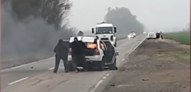 Choque seguido de incendio en la Ruta 33 (VIDEO)