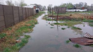 Las calles y pasadas que la gente dispone para transitar o ingresar y salir del lugar se encuentran con agua estancada, ya que el predio prácticamente no tiene drenaje, más allá que cuente con calles trazadas, pero sin mantenimiento al tratarse de un predio privado, que se encuentra ocupado.