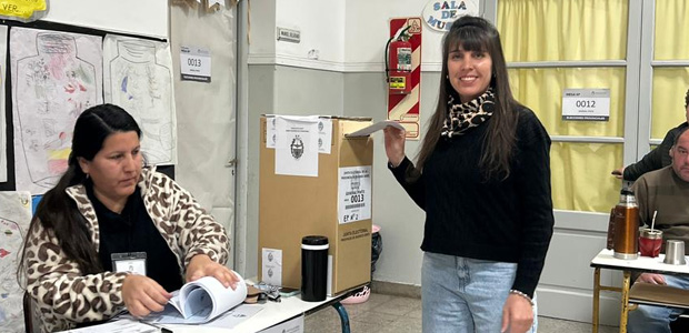 De los tres candidatos que encabezan Lista en General Pinto, la representante libertaria fue la primera en emitir su voto, esta mañana alrededor de las 10 horas.