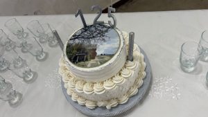 El acto culminó con el retiro de las banderas de ceremonia y un brindis compartido con torta y vino de honor.