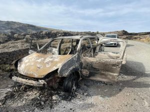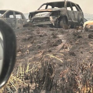 Fue una jornada negra para turistas y visitantes que estaban en Traslasierra en la zona de Parque Nacional Quebrada del Condorito porque un incendio afectó el estacionamiento y destruyó trece autos .