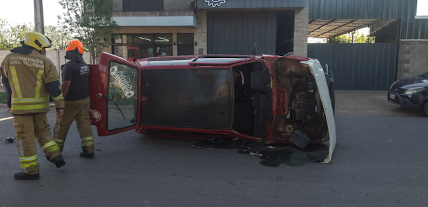 El Fiat, que habría sufrido un desperfecto en la dirección quedó volcado en el medio de la calle, debiendo ser puesto en su posición normal para el posterior retiro por bomberos.