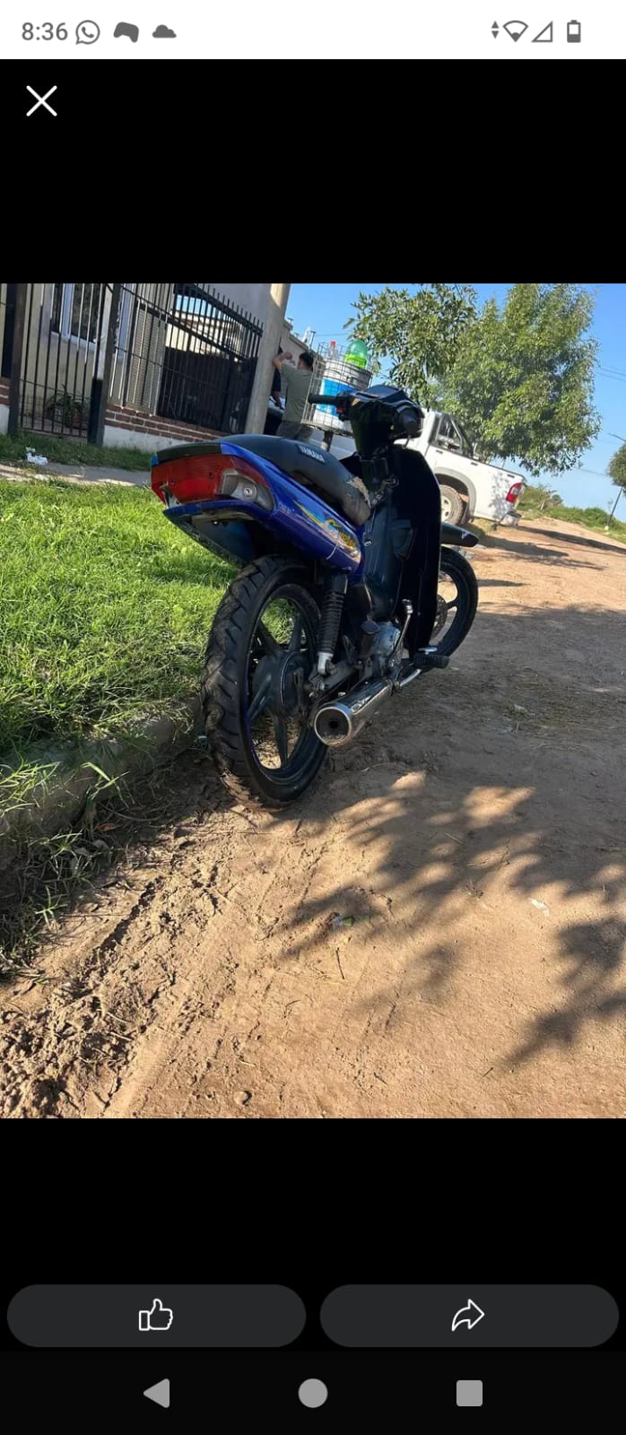 La moto cuenta con varias calcomanías colocadas, entre ellas una del Gauchito Gil que se destaca.
