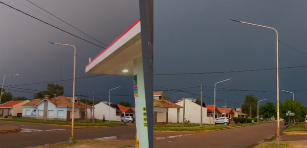Al caer el día, así lucía el cielo en la localidad de Coronel Charlone, donde desde media tarde la tormenta fue una amenaza constante, con una imagen imponente y sonido de truenos.