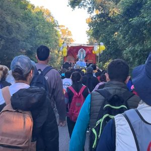 Como cada año, desde hace ya más de cuarenta y seis, desde la noche de este sábado 8 hasta el amanecer del domingo 9 de noviembre de este año jubilar 2025 adultos, jóvenes y adolescentes de distintas comunidades de la diócesis de Santo Domingo de Nueve de Julio, peregrinaron hasta la abadía benedictina “Santa María de Los Toldos” donde se venera la imagen de la “Virgen Negra” traída por los primeros monjes provenientes de Suiza. Partieron al finalizar la misa vespertina en el santuario diocesano de Nuestra Señora de Fátima de Nueve de Julio presidida por monseñor Ariel y concelebrada por los sacerdotes de la Catedral. El lema “Con María caminamos en la esperanza” coincide siempre con el de la peregrinación a pie a Luján, ya que está de la diócesis surgió como un modo de estar en comunión con aquella. Hasta hace alrededor de diez años, se llevaban a cabo en la misma fecha.