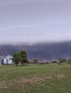 La tormenta por demás de imponente se aprecia con nubes extrañas y de aspecto particular, tal lo publicado por Jeremías Baraldi.