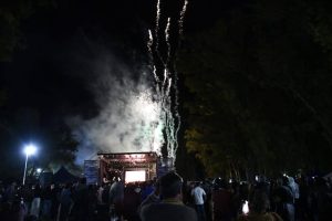 Al encendido del fuego a la medianoche, lo acompañaron los fuegos artificiales que este año fueron el agregado de la noche.