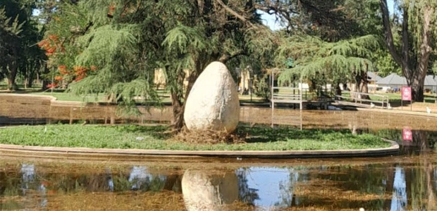 Un misterioso huevo gigante en el parque municipal genera intriga en la población: