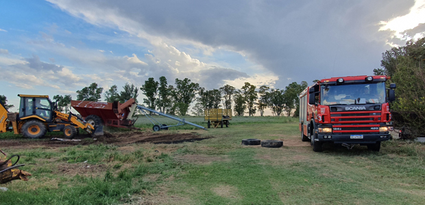 Los bomberos acudieron esta tarde, tras el llamado d ela sirena, por el aparente incendio de una cosechadora que se encontraba ubicada detrás del motel Seducción, a metros d ela Ruta 188.