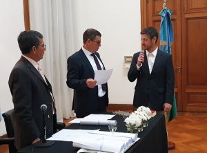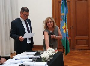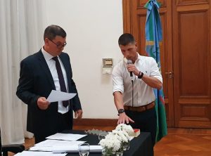 La ceremonia que no tuvo sobresaltos, cumplió con lo establecido, reconociendo a los ediles que cumplieron su mandato a los que se les entregaron presentes recordatorios, luego asumió el presidente de la Asamblea Provisional, Dante Costamagna (foto de portada), quien al ser el integrante del espacio ganador de las últimas elecciones de mayor edad, ocupó la presidencia, luego de jurar. Él fue el encargado de la toma de la jura a los restantes.
