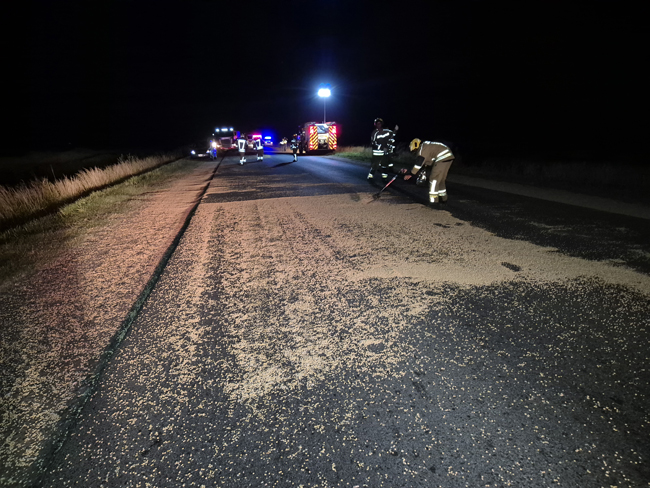 El tránsito estuvo interrumpido por un lapso cercano a la hora, debido a los restos, además de la soja, que había sobre la traza.
