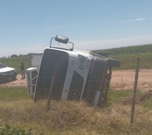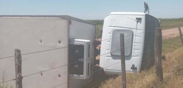 Volcó vehículo de transporte de mercadería de una empresa de General Villegas