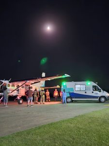 El profesional describió minuciosamente todo el trabajo realizado por el personal que intervino en el parto por cesárea y el cuidado de la criatura hasta la llegada del avión que arribó al aero club local, para partir nuevamente con la paciente cerca d ela medianoche.