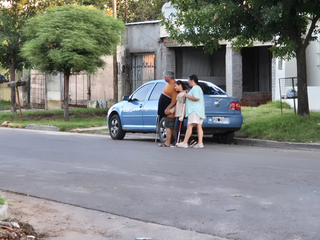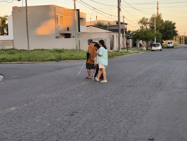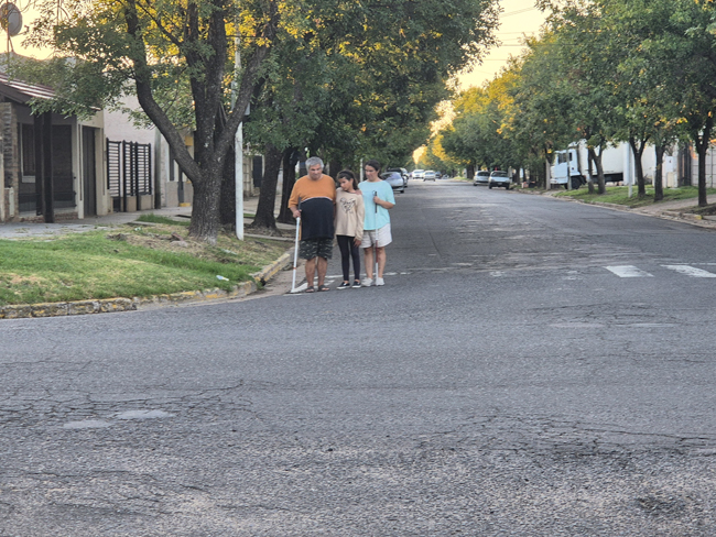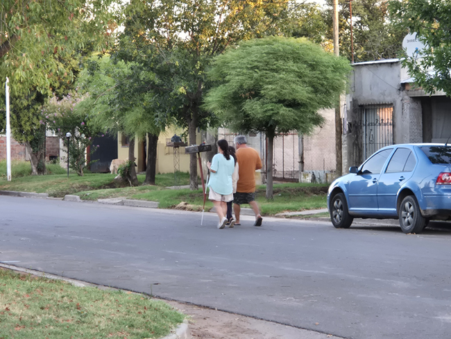 Esta tarde cuando el sol comenzaba a caer, los tres se encontraban caminando rumbo a su casa, lo hacían por la calle desplazándose, orientados, tratando de disminuir a la mínima expresión los obstáculos que lógicamente se les presentan, autos y motos, estacionados, los semáforos, entre otros.