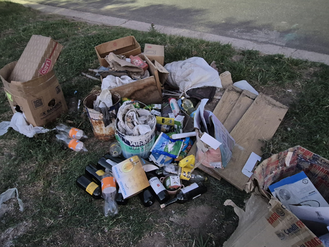 Esta vecinos de las inmediaciones que advirtieron alimentos entre basura arrojada en la vía pública se comunicaron con Distrito Interior a fin de compartir la inquietud.